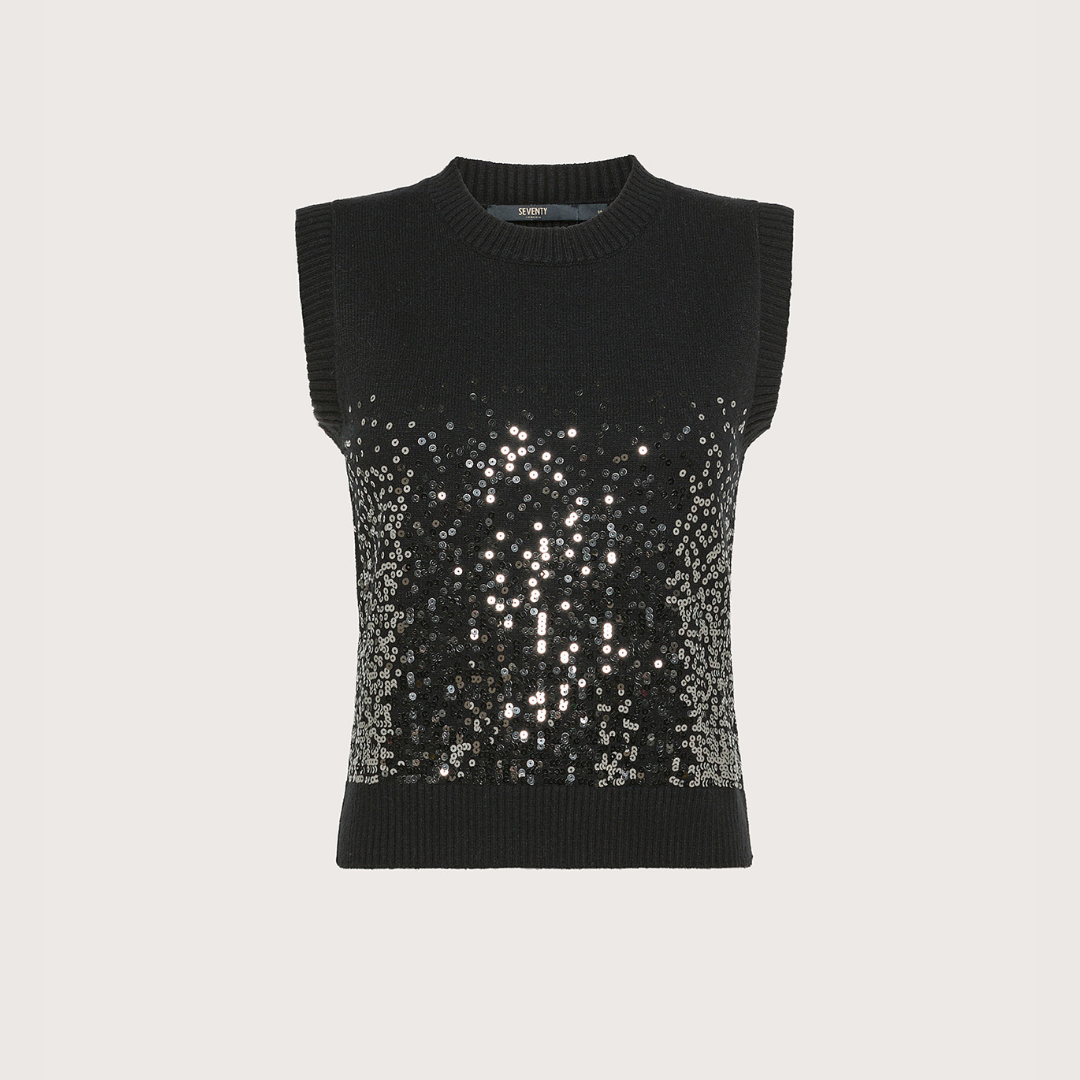 Black Knit Sequin Top